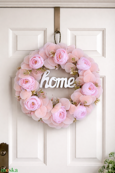 Óriás peónia kopogtató eukaliptusszal, LED füzérrel