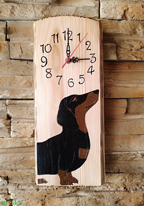 Fa falióra tacskó kutyussal