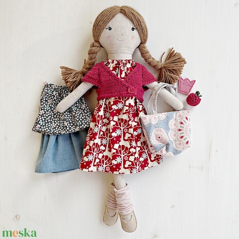 Rozi 41 cm-es öltöztethető textilbaba, készen áll a kalandokra és alig várja, hogy találkozzon leendő legjobb barátnőjével. Rajong az érett almáért, finom nasijait kistáskájába rejti.