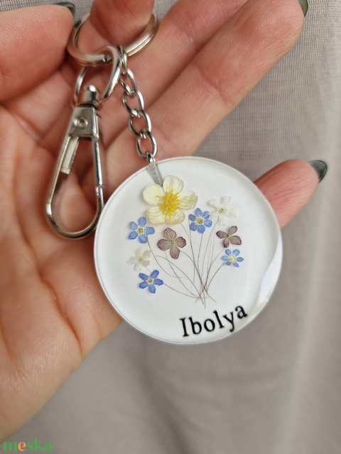 Hajtincses emlékőrző kulcstartó virágos névvel