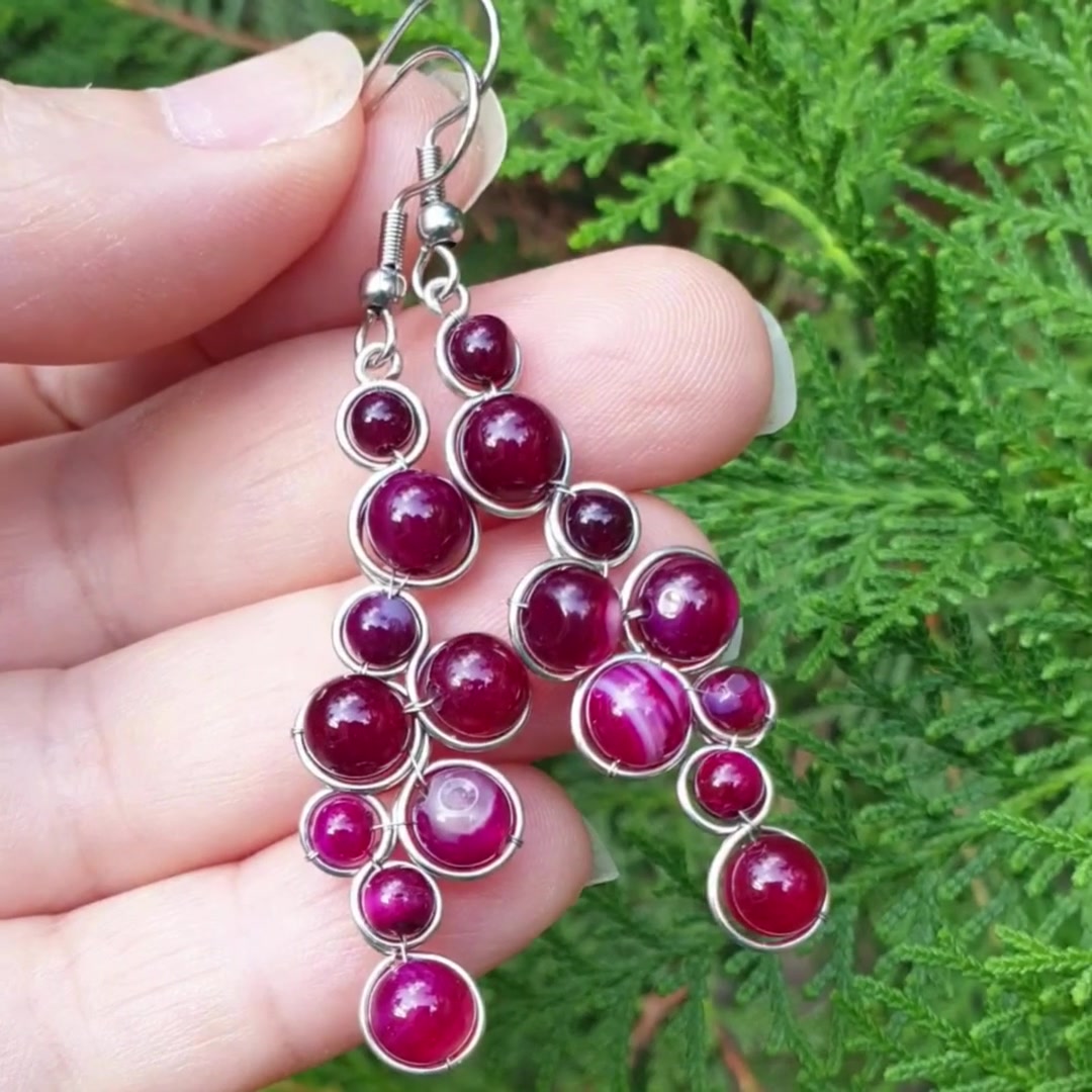 - Anyaga: ásvány, achát, ezüstözött ékszerdrót, nemesacél fülbevaló akasztó