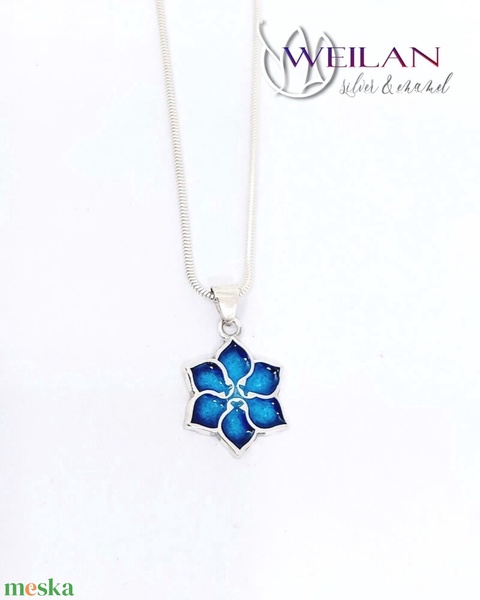 Ezüst Flora - Clematis tűzzománc medál, türkizkék