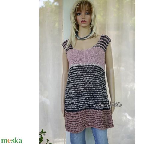 BELLE JUMPER - bohém, kézzel kötött pamut-len-viszkóz design pulóver ruha