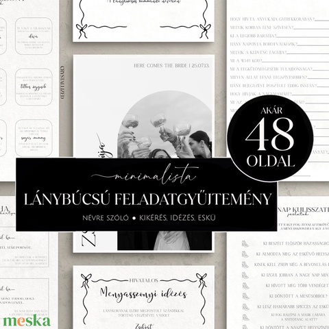 Lánybúcsú feladatgyűjtemény - ULTIMATE FULLPACK - 48 oldalas nyomtatható PDF - Személyre szabott, minimalista dizájn