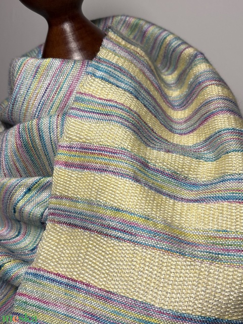 Ha egy olyan ragyogó sálat keresel, amely tökéletes eleganciát és meleget biztosít, ez a kézzel szőtt Sárga kék zöld átmenetes Selyem kendő tökéletes választás. Gyönyörű fénye van, és kellemes a tapintása. A kendő szövésének bonyolult technikája egyedi, textúrált mintát hoz létre, így ez a kiegészítő valóban egyedülálló bármely ruhatárban.