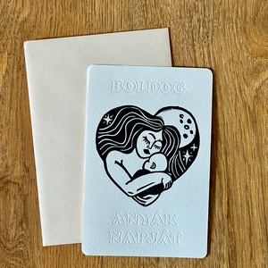 Egyedi Linómetszet "Anyák napi" képeslap dombornyomott felirattal és borítékkal