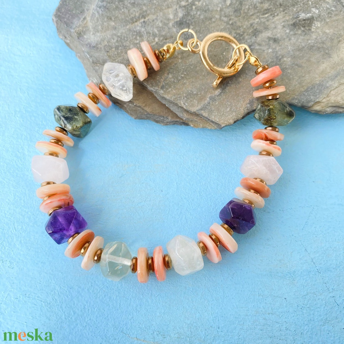 citrin, ametiszt, phrenit, rózsakvarc, kagyló, nemesacél kapocs
