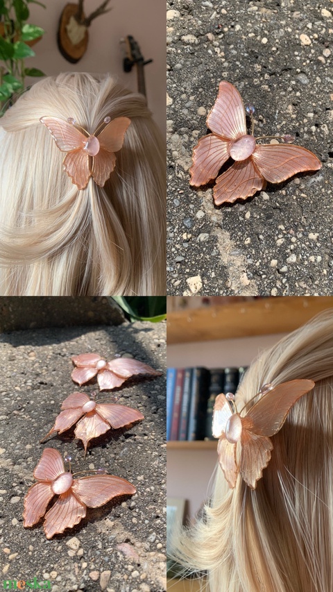 Rózsaszín-bézs csillogós pillangó hajcsat