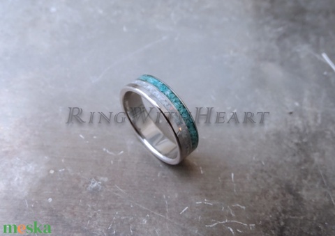 Titán vagy nemesacél gyűrű türkizzel és Fire and Snow BelloOpallal, türkiz gyűrű, jegygyűrű, eljegyzési gyűrű