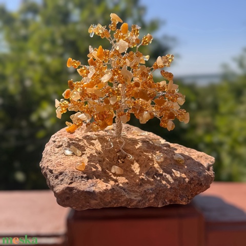 Pénzfa citrin ásványból, Bonsai kristály Ékszerfa szerencsefa, életfa kristályfa kvarc kövekből drágakő fa citrin kálcit