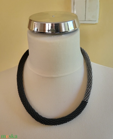 Fekete-szürke gyöngyhorgolt nyaklánc