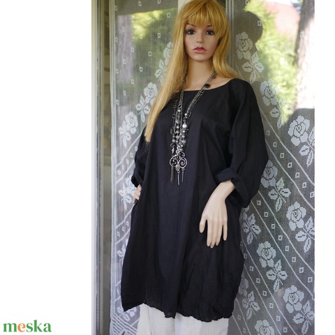 TANITA - extravagáns könnyű pamutvoilé tunika / fekete