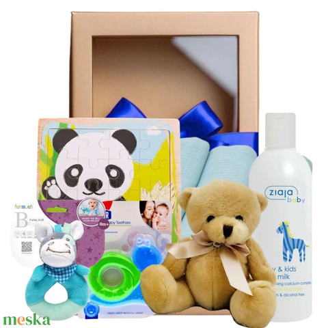 textil pelenka, szundikendő, rágóka, babaolaj, díszcsomagolás