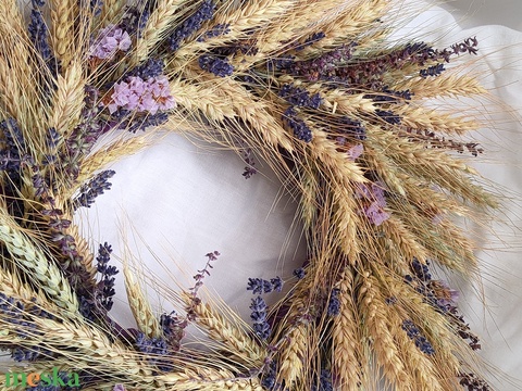 Természetes búzakoszorú levendula, zsálya és sóvirág felhasználásával - ajtódísz szárított virágokkal - natúr kopogtató