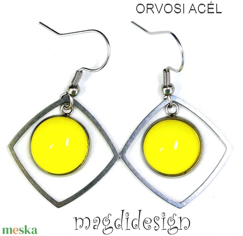 Citromsárga üvegékszer lógós nemesacél fülbevaló