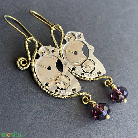 REINA steampunk sárgaréz fülbevaló - lila