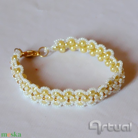 Elegáns alkalmi gyöngy karkötő sárga tekla és apró fehér gyöngyökkel