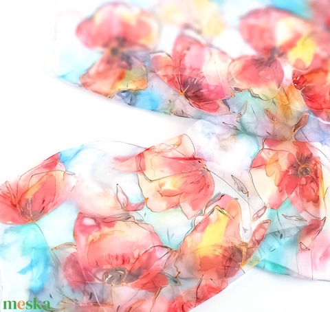 Kézzel festett, művészi és hordható sálak tiszta selyemből. Időtálló érték, természetesen.