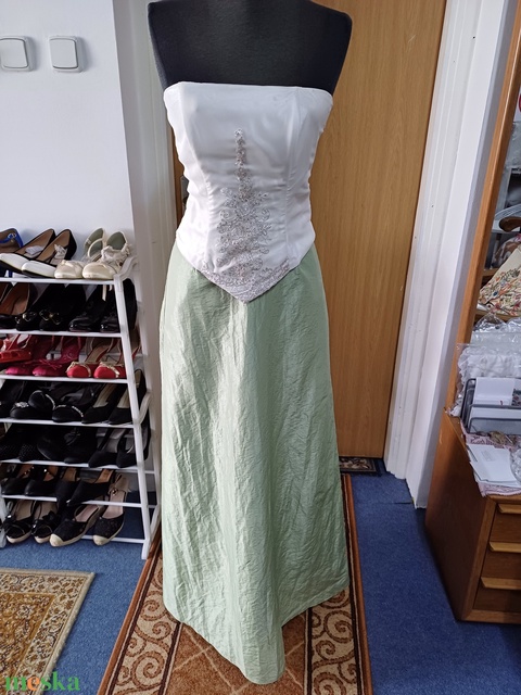 Koszorúslány, báli, alkalmi ruha, fehér - zöld.
