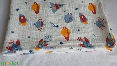 Nyári muszlin babatakaró kánikula duplagéz gyerektakaró 70x90 cm űrhajós