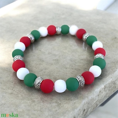 Magyar nemzeti színű szurkolói gyöngy karkötő kokárda 5582620