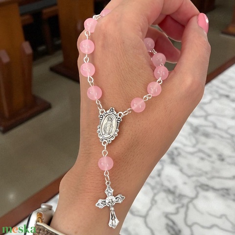 Autós rózsafüzér, tizedes rózsafüzér világos rózsaszín gyöngyökből 5582626