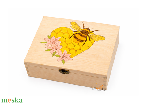 Kaptár mintás, virágos szíves méhecskés teafilter tartó doboz