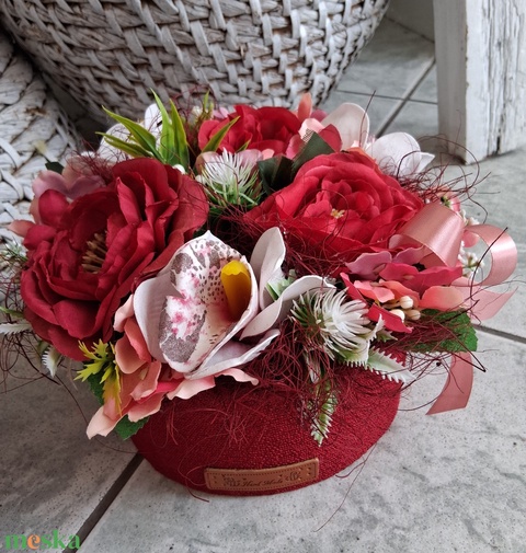 Virágos bordó asztaldísz dekoráció virágbox doboz