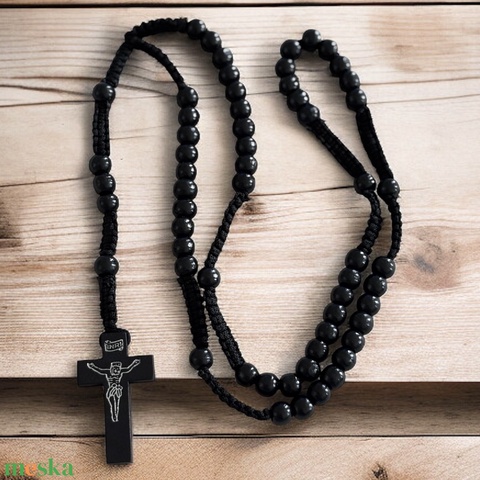 Fa rózsafüzér fa gyöngyökből (fekete) 5583282
