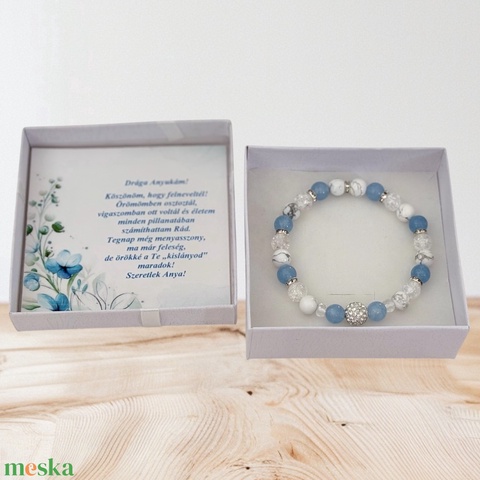 Örömanya szülőköszöntő ajándék ásvány karkötő díszdobozban kísérő szöveggel 5583289