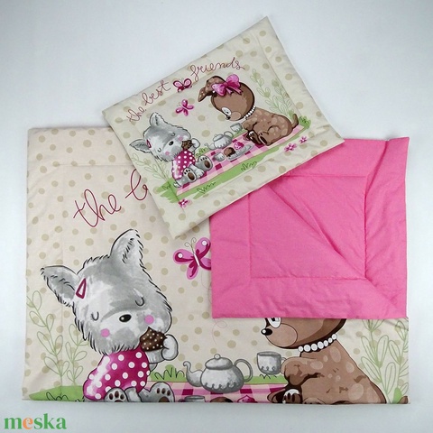 Egyedi 2 részes Ovis ágynemű - kutya mintás ovis takaro és lapos párna szett