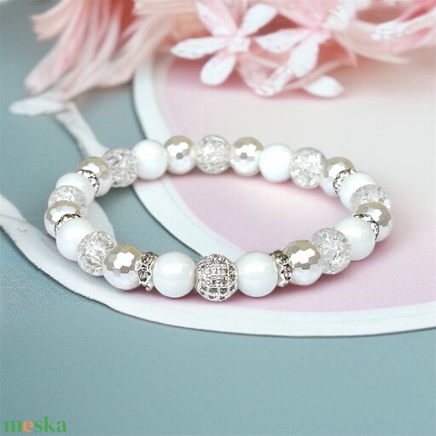 LUXURY ezüst fehér gyöngyház csillogó ásványgyöngy karkötő 16 5583821