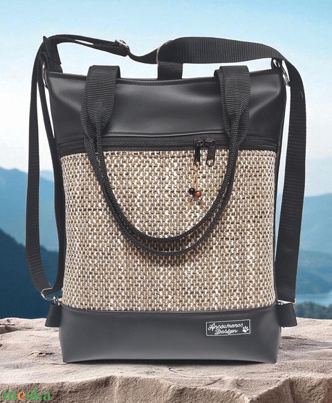 Elegáns 4in1 textilbőr-szövet hátizsák univerzális táska drapp cirmos