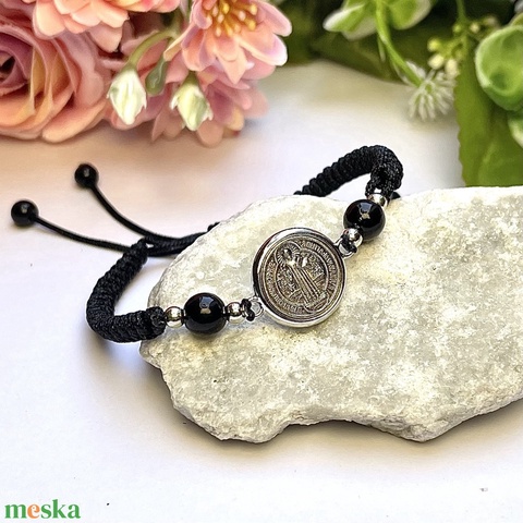 Állítható méretű csomózott Szent Benedek makramé karkötő 5584182
