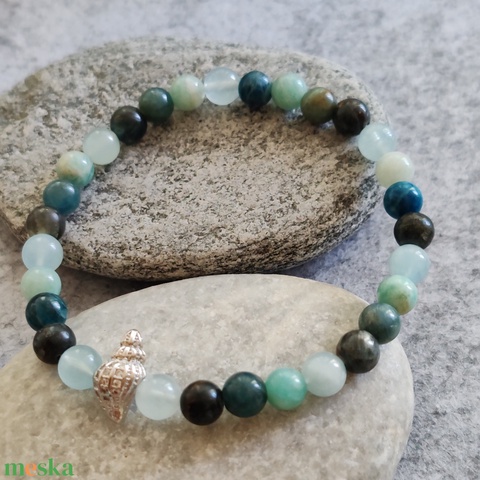 - Anyag/Összetevő gumiszál, zöld kianit, akvamarin, apatit, amazonit, cirkónia köves köztes