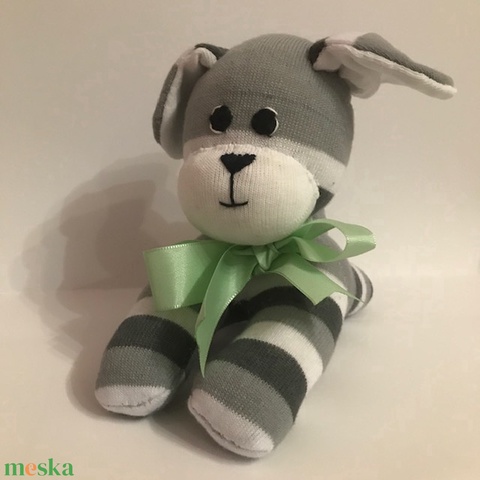 - Anyaga: pamut zokni, 100% polyester tömőanyag, arca hímzett, masni, szeme filc