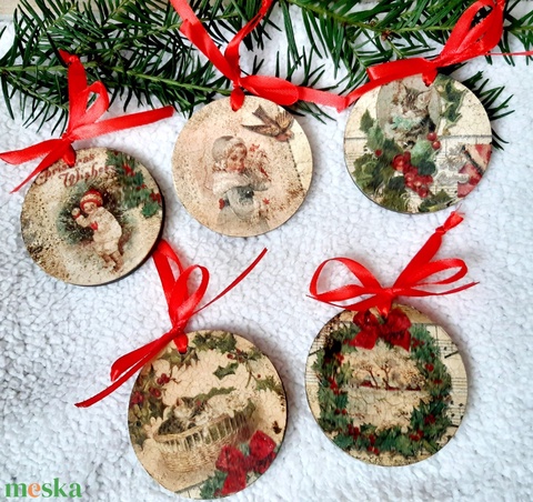 Karácsonyi üdvözlet-Karácsonyi fakorongok, ajándékkísérő, adventi dísz, karácsonyfa dísz