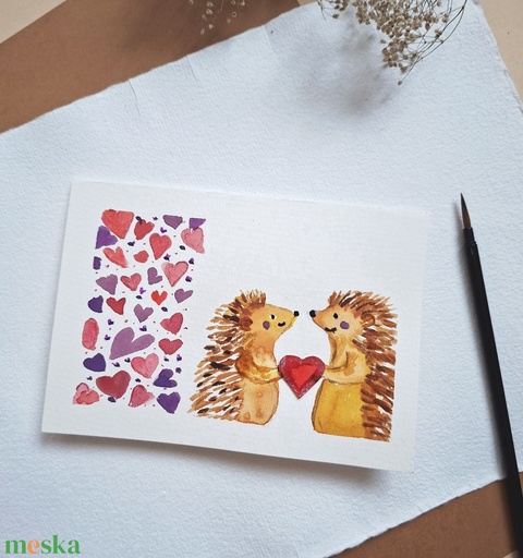 Szerelmes Sünik-kézzel festett köszöntőlap, Valentin napi kártya