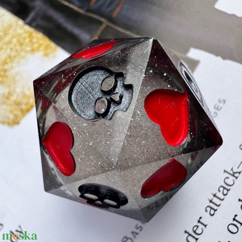 Az első webshopon megjelenő Death save d20 kocka kifejezetten különleges kellett hogy legyen, így fehér/ezüst liquid core belsőt kapott!
