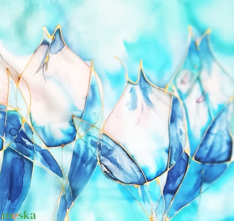Kézzel festett, művészi és hordható sálak tiszta selyemből. Időtálló érték, természetesen.