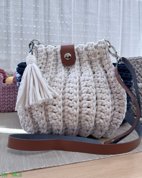 Pumpkin – horgolt váll- és oldaltáska bőrpánttal