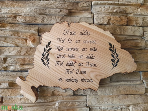Házi áldás nagyméretű régi Magyarország formájú fatáblán