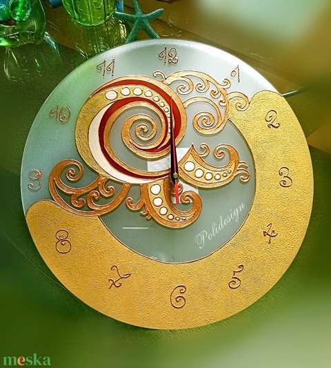Óra - Sárkány aranyban - festett üveg nagyméretű falióra