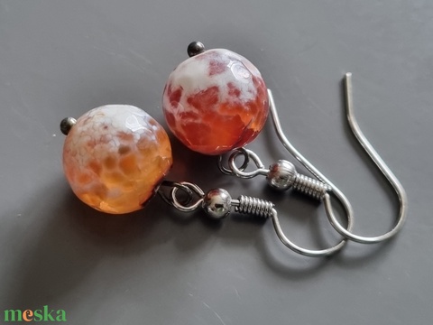 "Tűz" karneol tűzachát fülbevaló,ajándék, nőnek, lánynak, ásvány, ékszer, gyöngy