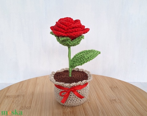 Horgolt cserepes rózsa