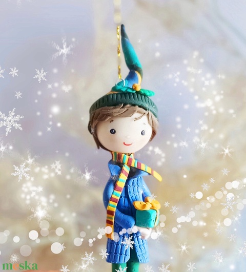 Felakasztható kisfiú dísz (barna)