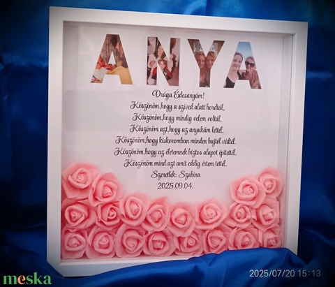 2db-os egyedi fényképes szülőköszöntő képkeret szettben Apa+Anya, fotókollázzsal, egyedi felitalrattal és dekorációval