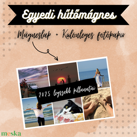 ❤️Ez a 15 × 10 cm-es hűtőmágnes nem csak egy egyszerű dekoráció: egy kis darab szeretet, amit bármikor ránézve újra és újra átélhetsz. Legyen szó kedves üzenetről, kedvenc képedről vagy személyre szóló ajándékról, ez a mágnes mindig emlékeztetni fog arra, ami igazán fontos.❤️ Miért fogod szeretni? ✅ Egyedi, kézzel készül a lehető legjobb minőségre törekedve ✅ Tökéletes apró ajándék: szívhez szól, mégsem túl hivalkodó ✅ Könnyen elhelyezhető bármilyen fémes felületen – hűtő, fém polc, irodai szekrény stb. ✅ Tartós, erős mágnes – nem esik le, nem görbül meg Ajánljuk: ◉ Mindenkinek, aki szereti a személyes meglepetéseket ◉ Születésnapra, névnapra, anyák napjára, pedagógusnapra és még megannyi más fontos alkalomra Hűtőmágnes elemei: ✨Prémium minőségű papír a gyönyörű képekért ✨Vastag mágneslap a tartósság érdekében Ajándék tartalma: ➤ Hűtőmágnes(ek) külön csomagolásban ➤ Két matrica ➤ Köszönöm kártya ➤ Lezáró matrica ➤ Díszboríték Rendelés menete: 1️⃣ Termékválasztás ⦁ Böngéssz a termékek között, és válassz kedvedre ⦁ Nagyobb mennyiség vásárlása esetén vedd fel velünk a kapcsolatot a Kedvezményhez 2️⃣ Kapcsolatfelvétel ⦁ Egyedi elképzelés vagy kérdés esetén, írj nyugodtan rendelés előtt ❤️ ⦁ A lehető leghamarabb megpróbálunk válaszolni, de ha nagyon sürgős, kérlek, keress meg minket valamelyik közösségi oldalunkon 3️⃣ Fényképek beküldése ⦁ Üzenetben egyeztetünk, és itt tudod elküldeni a képet/képeket 4️⃣ Tervezés ⦁ Összeállítjuk az első tervezetet a megbeszéltek alapján, ezt követően két alkalommal van lehetőséged módosítani, ha szeretnél ✨ 5️⃣ Elkészítés és csomagküldés ⦁ Elkészítjük és összeállítjuk a megrendelést, majd elküldjük a számlát, és a lehető leghamarabb, akár már másnap feladjuk a csomagot ⦁ A megrendelésektől függően adjuk fel a csomagokat, a tervezet jóváhagyását követően legkésőbb 7 napon belül feladásra kerül Fizetési lehetőségek: ✔️ Kártyás fizetés a Meskán keresztül ✔️ Banki átutalás (egyeztetés alapján) ✔️ PayPal (egyeztetés alapján) Fontos, hogy tudd: A termékleírásban látható képek csak illusztrációk, nem kerülnek nyomtatásra, a végleges termékhez saját fotót kell küldened. Mivel minden darab kézzel készül, a méretekben és apró részletekben (például árnyalatban, elhelyezkedésben vagy textúrában) kisebb eltérések előfordulhatnak. Ezek a kézműves jelleg természetes velejárói, és nem képezhetik reklamáció alapját. Kérjük, csak olyan képet küldj, amelynek használatára jogosult vagy, és amely nem sérti mások jogait. A feltöltött kép tartalmáért és jogtisztaságáért te vagy a felelős. ✨Magic Magnet - Ajándék, ami hozzátapad a szívedhez ✨