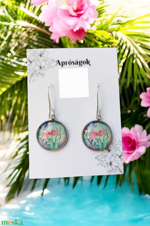 Trópusi kollekció 5., világos zöldes, türkizes, rózsaszín virágos