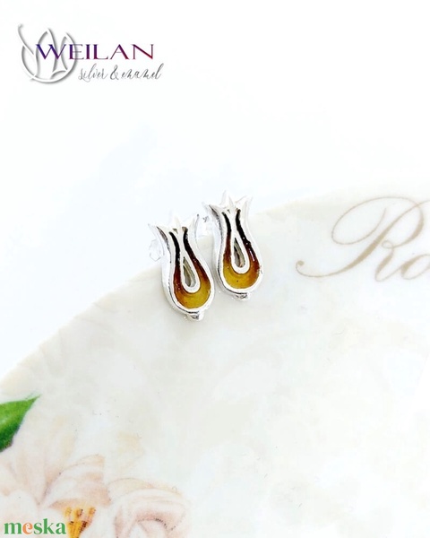 Pántlika ezüst tűzzománc stiftes fülbevaló, piros-narancs-arany